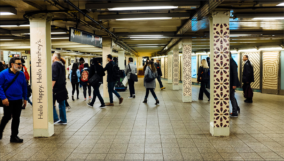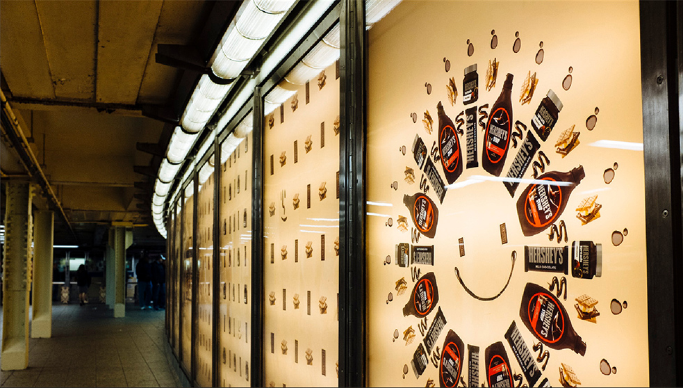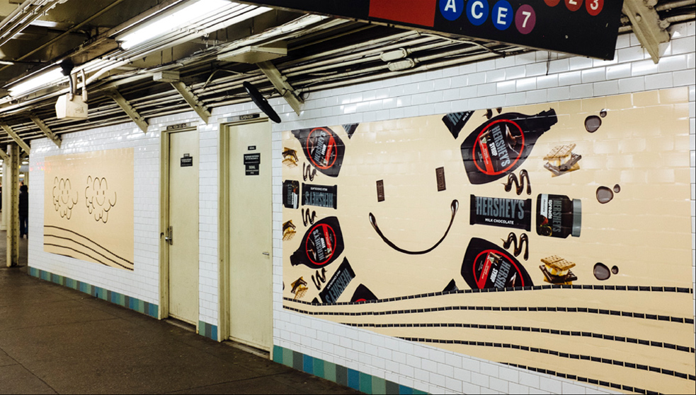 Hershey's wanted to create a masterbrand campaign that iconically and emotionally united the chocolate portfolio. Luckily chocolate promotes positivity. With Matthew Jerret and Tim Flood, the Executive Creative Directors of the Arnold New York office, we designed a product-centric, visually driven approach for the Hello Happy campaign. To launch it, the brand took over Times Square subway station in New York City.