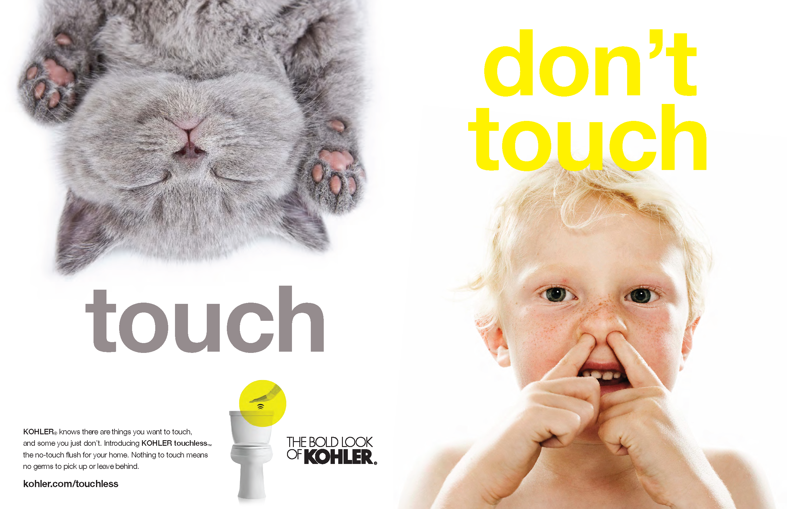 To launch the new Kohler Touchless toilet, we played off the insight that in life there are things you want to touch, and some you just don’t. An arresting television ad with over 6 million YouTube views and 704 shares on Facebook was also supported in consumer print and digital. In conjunction with the launch, Kohler did an exclusive at Home Depot, so we also created a television spot that was specifically tailored to that market.